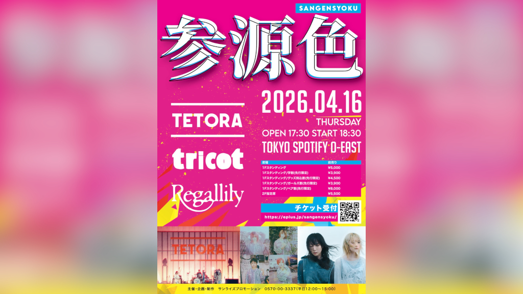 音楽イベント<参源色 – sangensyoku->でTETORA、tricot、リーガルリリーが競演